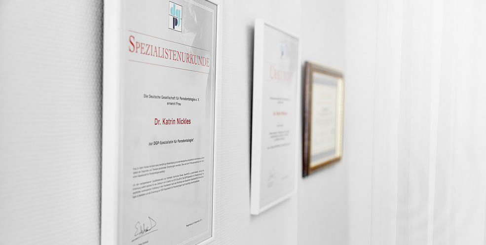 Seit 2013 nimmt Dr. Axel Nickles an einem 2 jährigen, berufsbegleitenden Studiengang der Akademie für Zahnärztliche Fortbildung Karlsruhe und der Otto-von-Guericke Universität Magdeburg teil.